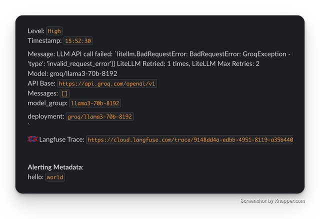 passed to the LLM. If you want to redact this from slack alerting set the following setting on your config