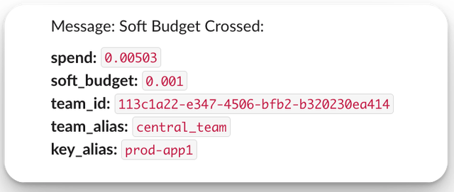 Budget & Spend | Budget tracking per key/user, Soft budget alerts, Weekly & Monthly spend reports per Team/Tag |
